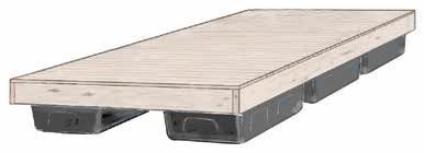 Bryggene leveres med plastpontong AP-Block 125l som er svært robuste - tåler bl.a. innfrysning om vinteren. Dog bør man se opp for vannstandsvariasjoner og forekomst av skruis.