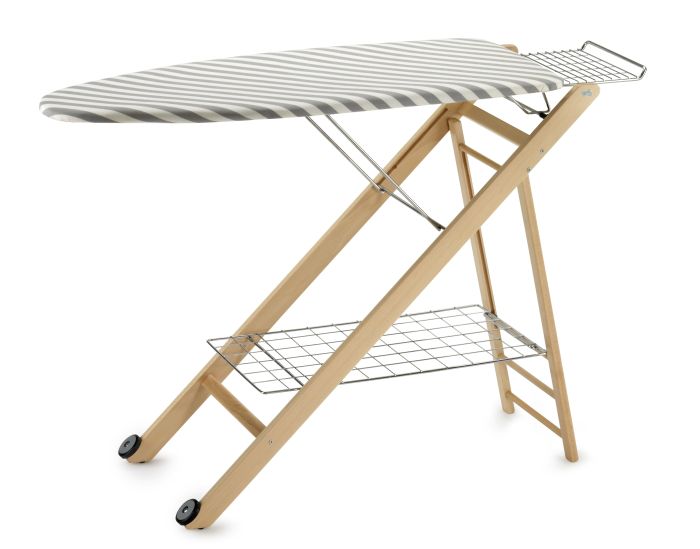 Strykebrett H801 leveres uten strykejern og passer perfekt inn i de fleste miljøer. Solid konstruksjon i naturtre. Elegant, eksklusiv og designriktig utførelse. Stilig og praktisk. Selve brettet er 107cm langt (totallengde 130cm) og 46 cm bredt. Sammenslått måler stativet 150cm. Vekt 9.25kg. Produsert i Italia.