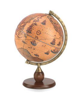 Zoffoli Globus i tradisjonell utførelse, 33 cm i diameter. Klassisk bordglobus med trefot, ramme i messingstål og antikk kartografi.