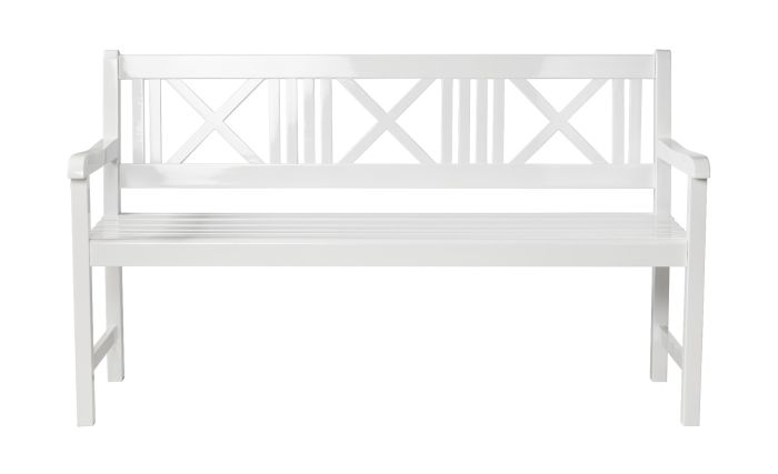Hagebenk Rosenborg er et klassisk høykvalitetsprodukt fra Cinas. Benken er laget av mahogni-treverk. Møbelet er behandlet med hvit, blank polyuretanfinish. Slipt og lakkert 4 ganger. Behandlingen gir settet et skinnende og glatt utseende, samtidig som det sikrer et slitesterkt og motstansdykig produkt mot fukt, sollys og slitasje.