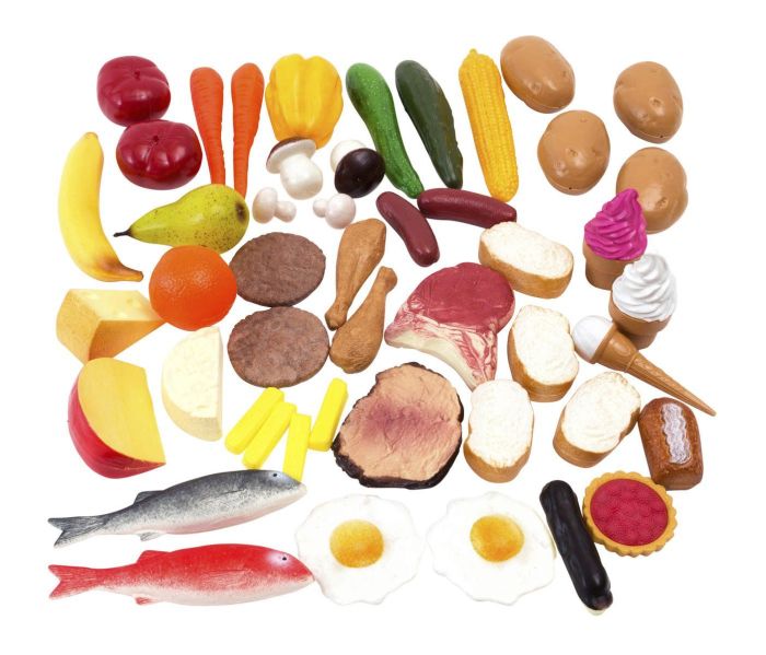 48 deler. Et stort sett med blandede matvarer. Mål fra 4,5-21,5 cm. Polyetenplast. Fra 2 år.