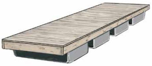 SF Overgangsbrygger som er utstyrt med et antall tverrstilte AP-Block (plastpontong 125l) gjør det mulig å forlenge bryggens utløp eller å forbinde 2 eller flere brygger til et samlet hele. Standard bredde er 110cm. Evt. koblingsbeslag kommer i tillegg.