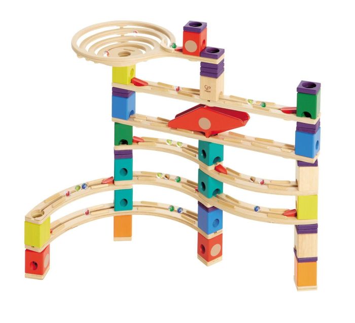 Kulebane av tre med kombinasjoner av både spiraler og renner i ulike former gjør at du kan bygge ulike baner med samme deler. Byggeinstruksjoner følger med. 136 deler. Fra 4 år.