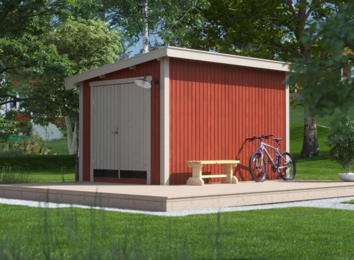 Saga 10 er en passe stor og stabil bod på 9,6 m² med stående panel og pulttak, som passer til den litt større hagen. Saga 10 kan brukes til oppbevaring av dekk, gressklipper, sykler, hagemøbler og hageredskaper. Saga 10 egner seg også utmerket til innredning som pumpehus, badstue med avslapningsrom, snekkerbod eller hobbyrom. Boden sklir godt inn i miljøer med eksisterende pulttak. Boden leveres som et monteringsklart byggesett i ferdige elementer, der panelen er montert direkte på stenderverket. Vinterisolert vindu på 50x50cm kan kjøpes som tilvalg. Leveres ubehandlet.